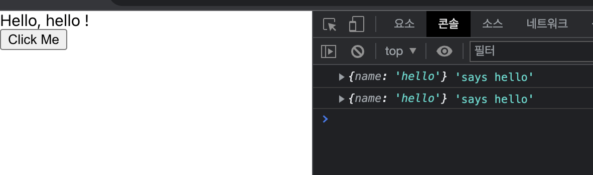 console.log({name}, 'says hello');